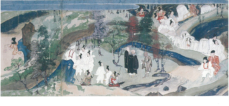 文永11年(1274)の夏、一遍上人は熊野の山中で一人の僧に会いました。「一念の信をおこして南無阿弥陀仏ととなえてこの札を受けてください」と言って念仏札を渡そうとするが僧に拒否され、押し問答の後無理矢理にお札を渡しました。